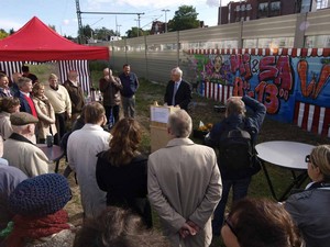 Im Beisein vieler Prominenz aus Politik, Wirtschaft und der Presse gab dann der Pressesprecher der DB Netz AG. Herr Meyer-Lovis, den Start zum Bemalen. Das sonnige Wetter hat es gut mit uns gemeint, so dass die vorgenommenen Motive, die sich ausschließlich auf Rahlstedt beziehen, auch fertig gestellt werden konnten. |